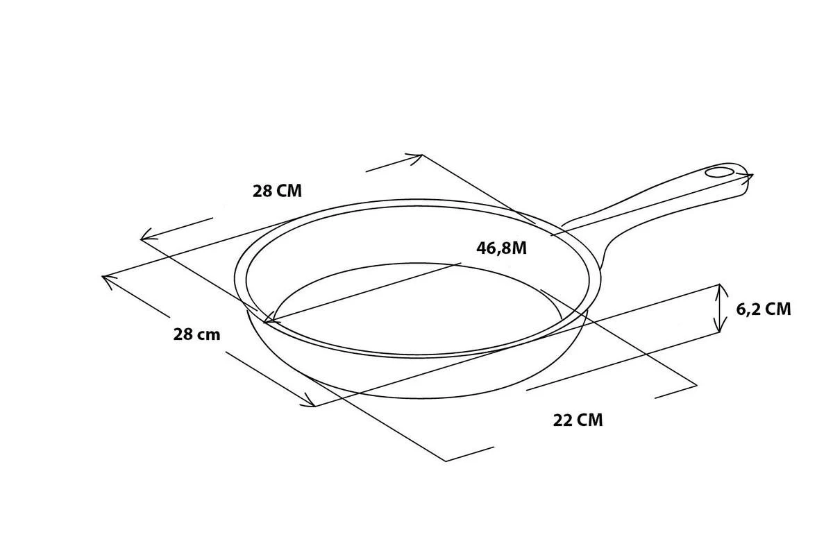 Let op: Deze koekenpan 28 cm is geschikt voor maaltijden voor 3 tot 4 personen. Je bakt hierin grotere stukken vlees of vis.