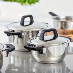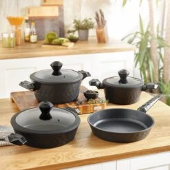 Cheffinger Pannenset – 10 Delig – Marmeren Coating – Inductie – Met Glazen Deksels – Zwart
